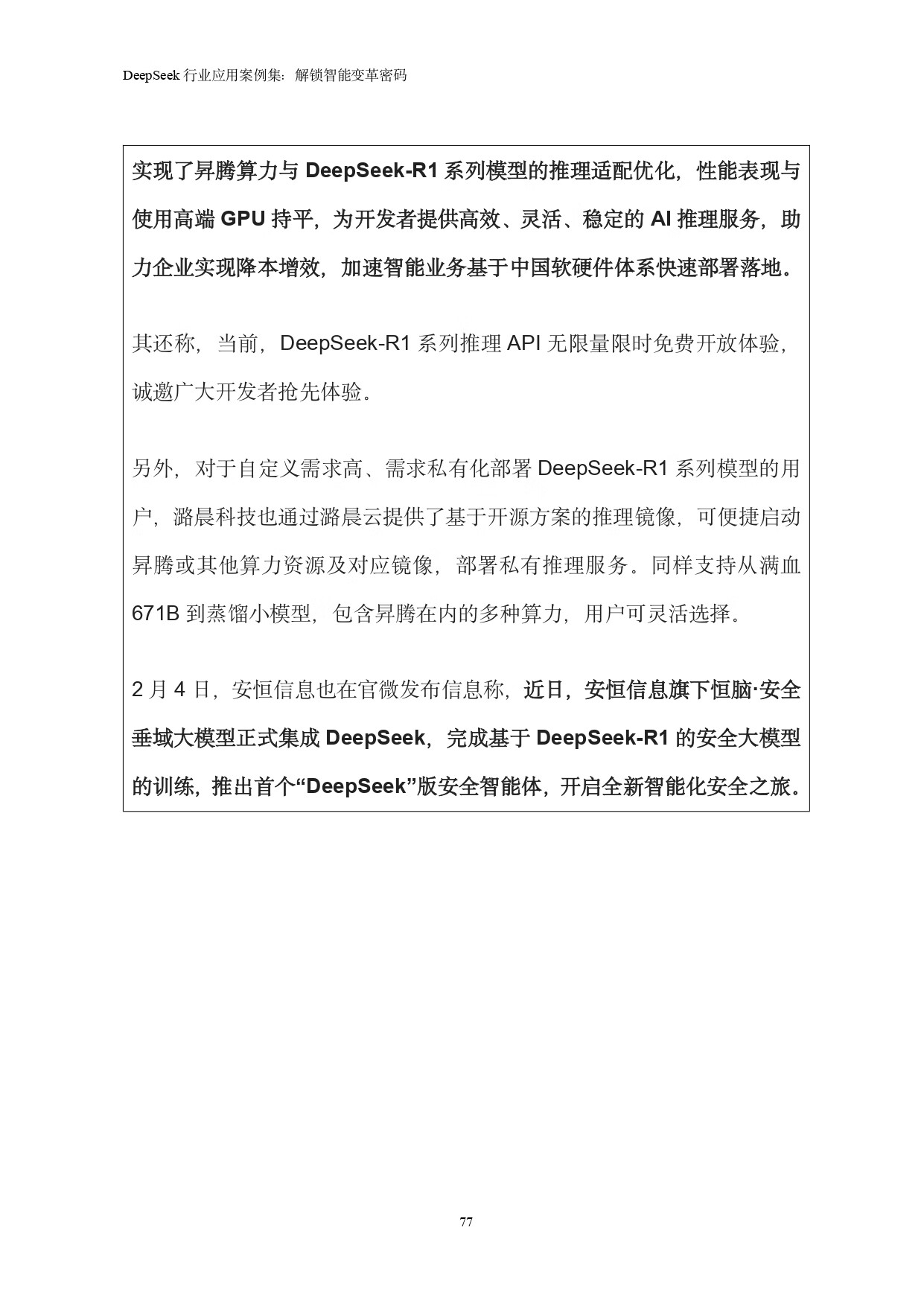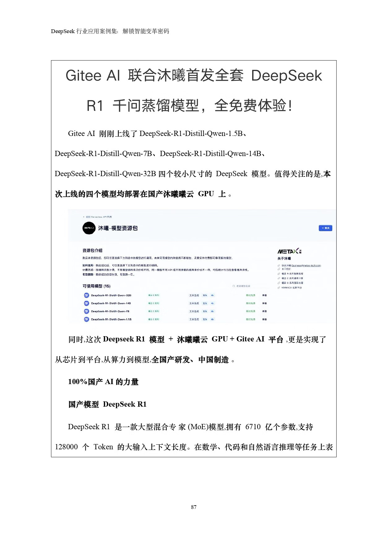 DeepSeek学习资料 发布于 2025-03-07 11:34:51 浙江大学:DeepSeek行业应用案例集(153页)(文末可下载PDF) 下方评论后显示隐藏链接 综合 #DeepSeek#学习资料 1 浏览 (412) 点赞 (1) 收藏