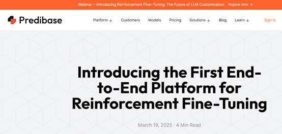 今天凌晨,知名大模型训练、开发平台Predibase发布了,首个端到端强化微调平台(RFT)。