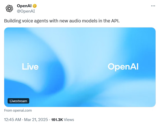 今天凌晨1点,OpenAI进行了技术直播发布了三款全新语音模型,专用于开发语音AI Agent。