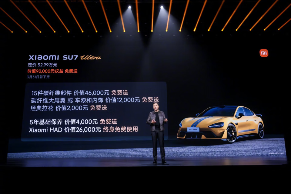 而起售价 52.99 万元的小米 SU7 Ultra,上市 3 天后锁单量超过了 1 万,提前完成了一年的 KPI。