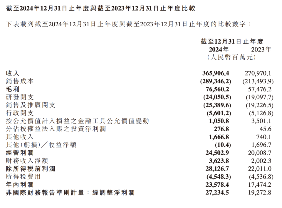 小米集团 2024 和 2023 年度收入和支出数据 | 图片来源:业绩报告