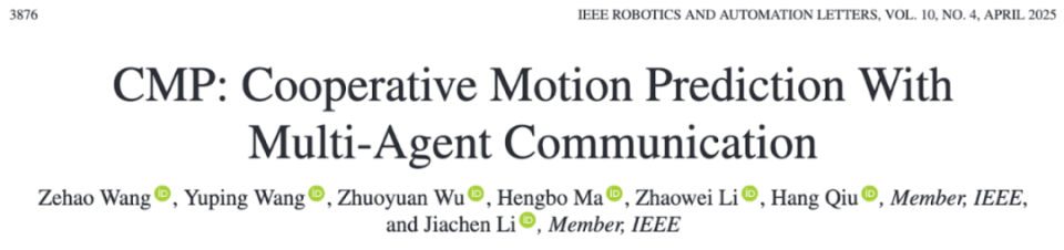 2025 年 3 月,加州大学河滨分校与密歇根大学、加州大学伯克利分校以及华盛顿大学联合团队在机器人领域顶级期刊《IEEE Robotics and Automation Letters》发表最新研究成果 ——CMP(Cooperative Motion Prediction),首次提出一种面向车联网(V2X)的协同运动预测框架,通过多车信息共享与融合,显著提升自动驾驶车辆的轨迹预测精度与场景适应能力。该技术已在真实场景数据集 V2V4Real 和仿真平台 OPV2V 中验证其高效性,相比现有最优模型,预测误差降低 12.3%,为复杂交通环境下的自动驾驶安全决策提供了全新解决方案。