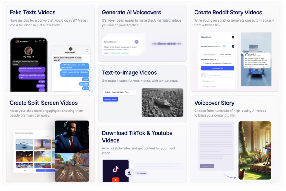 任何人都能几分钟内批量生产垃圾短视频|图源:Crayo.ai