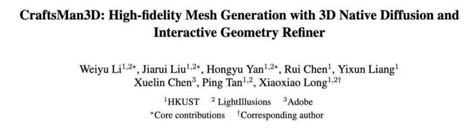 香港科技大学谭平教授团队在 CVPR 2025 发表两项三维生成技术框架,核心代码全部开源,助力三维生成技术的开放与进步。其中 Craftman3D 获得三个评委一致满分,并被全球多家知名企业如全球最大的多人在线游戏创作平台 Roblox, 腾讯混元 Hunyuan3D-2,XR 实验室的 XR-3DGen 和海外初创公司 CSM 的 3D 创作平台等重量级项目的引用与认可。