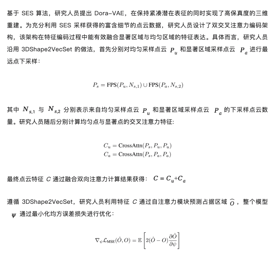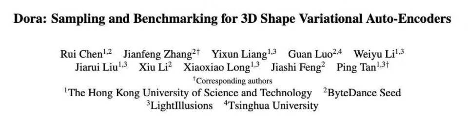 当前原生三维生成模型主要由两部分构成:一是 3D-VAE(3D Variational Auto Encoder)变分自编码器,它通过 Encoder 网络将三维模型压缩编码至潜在空间(latent space),并通过 Decoder 网络解码重构出三维模型;二是基于 3D-VAE 构建的潜在扩散模型(latent diffusion model)用于处理文本或图像输入的三维模型生成。三维生成大模型所呈现的细节上限,在很大程度上取决于 3D-VAE 对三维几何的编码与重建能力。为提升三维模型编解码过程中的几何细节丰富度,香港科技大学谭平团队联合字节跳动豆包大模型团队与光影焕像团队,共同提出了 Dora 模型来改进三维原生 VAE。