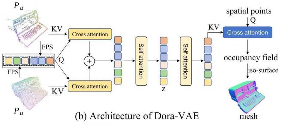 本文提出的 Dora-VAE,创新性地将显著边缘采样算法与双交叉注意力机制相结合,极大地提升了三维变分自编码器(3D-VAE)的重建质量与压缩性能。在训练阶段,该方法能够精准识别出具有较高几何复杂性的区域,并对其优先处理,从而有效改善了对精细几何特征的保留情况,让变分自编码器能够着重关注那些传统均匀采样方式容易忽视的关键几何细节。在实现高质量重建的同时,相较于当前 SOTA 方法(Xcube),Dora-VAE 在 3D 形状压缩率方面实现了超过 8 倍的提升 。