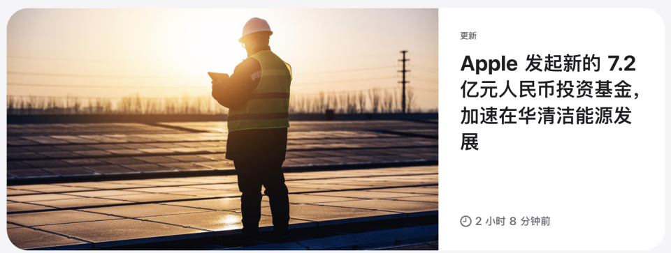 苹果发起7.2亿元人民币投资基金,加速在华清洁能源发展