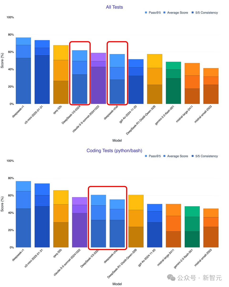 根据网友Xeophon的自测,DeepSeek-V3-0324所有指标性能暴涨,击败了Claude 3.5 Sonnet,成为目前最强的非推理模型。