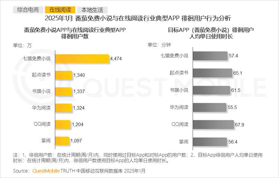 5、在线阅读领域用户使用时长是平台粘性的重要指标,对比徘徊用户对于平台使用时长,更能侧面反映竞对威胁程度