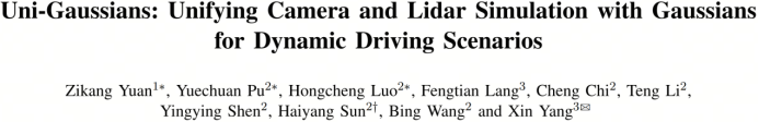 论文标题:Uni-Gaussians: Unifying Camera and Lidar Simulation with Gaussians for Dynamic Driving Scenarios