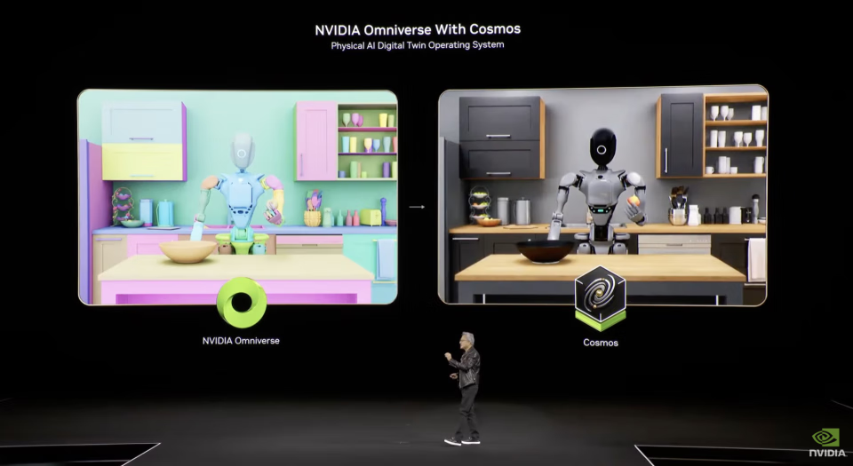 先从模型开始说,本次GTC放出了今年1月公布的具身智能基础模型Cosmos的升级版。