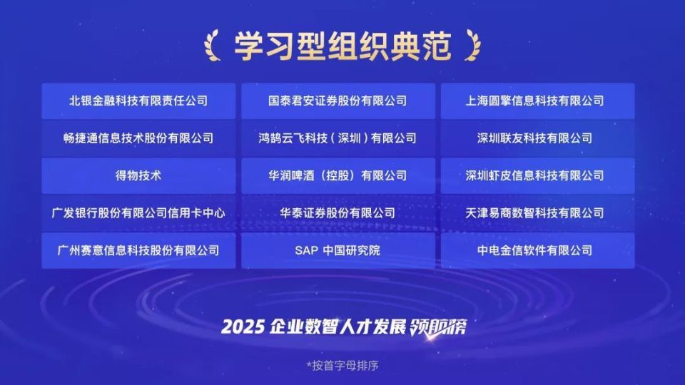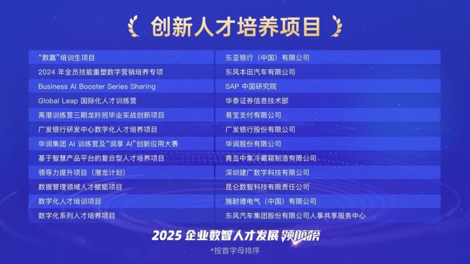 在数智化发展进程中,企业的前进离不开人才培养和组织创新。为了表彰和感谢过去一年中在数智化组织与人才发展中取得卓越成就的企业、项目和个人,极客邦科技双数研究院组织了“ 2025 企业数智人才发展领航榜”评选活动,经过综合评审,34 个获奖单位脱颖而出。