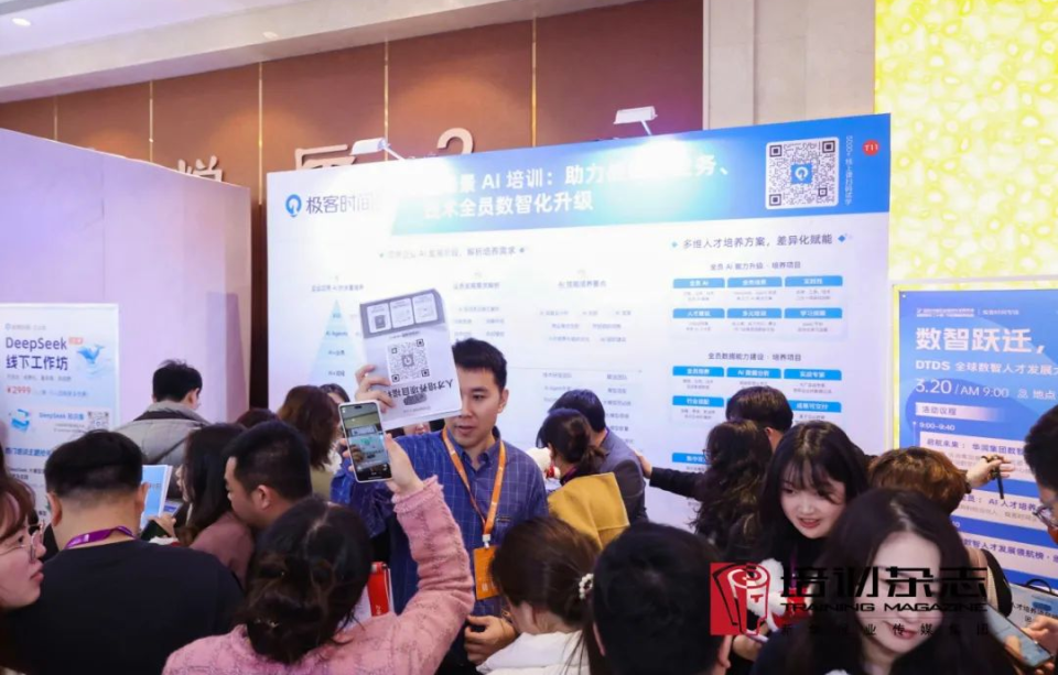 3 月 19-21 日,2025 年中国企业培训与发展年会在上海富悦大酒店盛大启幕。作为企业数智化人才培养的领军者,极客时间携「企业全员 AI 升级培养项目」与「全员数据能力建设培养项目」两大核心产品亮相,为参会企业培训负责人展示了从战略设计到落地实施的全链路数智化人才培养解决方案,现场咨询与互动热度持续攀升。