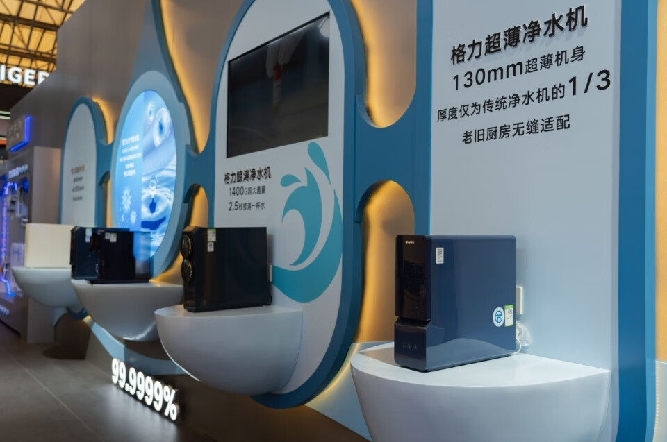 在环境电器区,格力真省钱净水机搭载LTS全维净水系统,实现整机6年免换芯。格力6个9净水机,除菌率突破 99.9999%。此外,全新上市的格力鲸涛净水器,不仅升级了Filter-max巨省芯3.0技术,还拥有大流量水流,2.5秒就能接满一杯水。