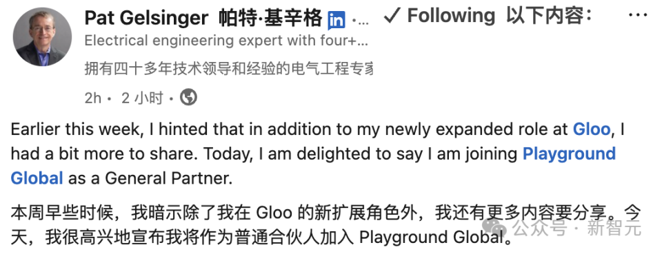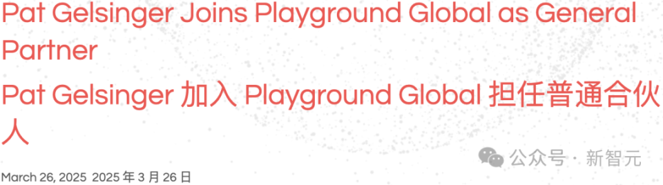 【新智元导读】前英特尔CEO、科技行业大佬帕特·基辛格(Pat Gelsinger)再次出山,加入风投企业Playground Global,重点投入硬科技,包括半导体、垂类AI、量子计算等。现在,正是用技术造福人类的时刻!