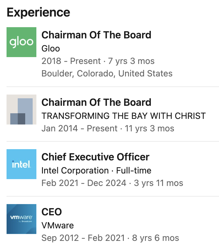 就在加入Playground Global的2天前,Gelsinger刚刚宣布,他将在以信仰为核心的科技公司Gloo中出任执行董事长兼技术负责人,全面负责产品开发工作。