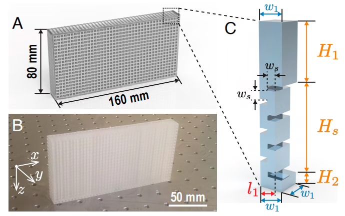 为了促进自弯曲超声波束的产生,研究人员使用了 3D 打印的声学超表面。