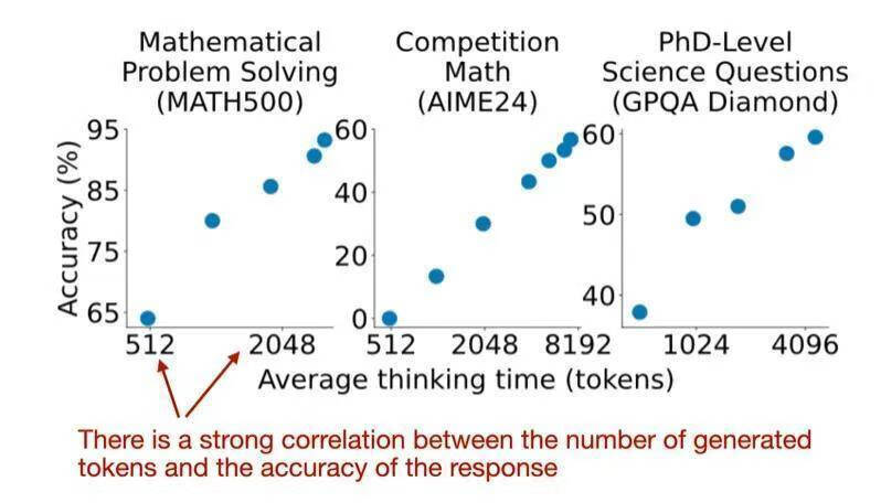 从图中能够清晰看到,无论是采用纯强化学习方法,还是将强化学习与监督学习相结合,亦或是单纯运用监督学习方法,模型通常都会生成较长的响应内容,其中涵盖了推理的中间步骤以及详细解释。然而,推理成本是与响应长度呈正相关的,这就意味着,上述这些训练方法本质上与推理时间扩展密切相关。