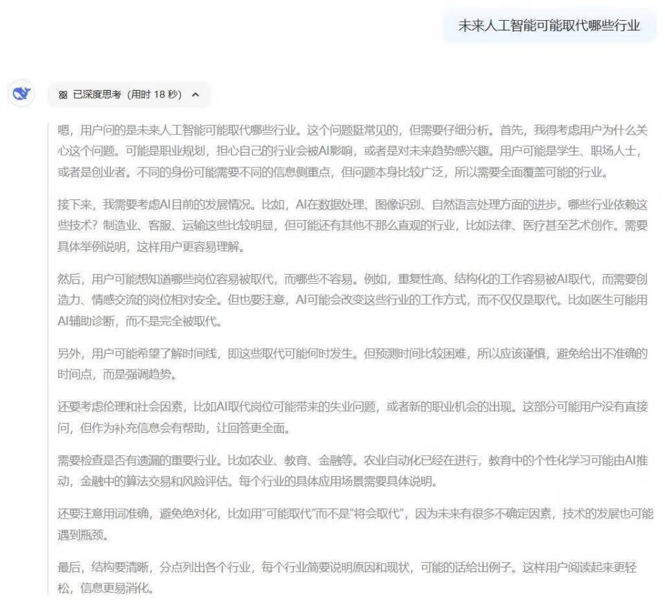 通过我们日常和 Deepseek 的交流可以看到,推理模型明确的展示了其思维过程,结合实际应用场景中来看,这有助于我们理解模型的决策过程,这在需要高度信任的应用场景中尤为重要,比如医疗诊断或金融投资。