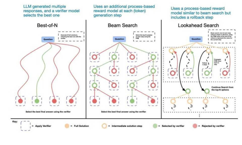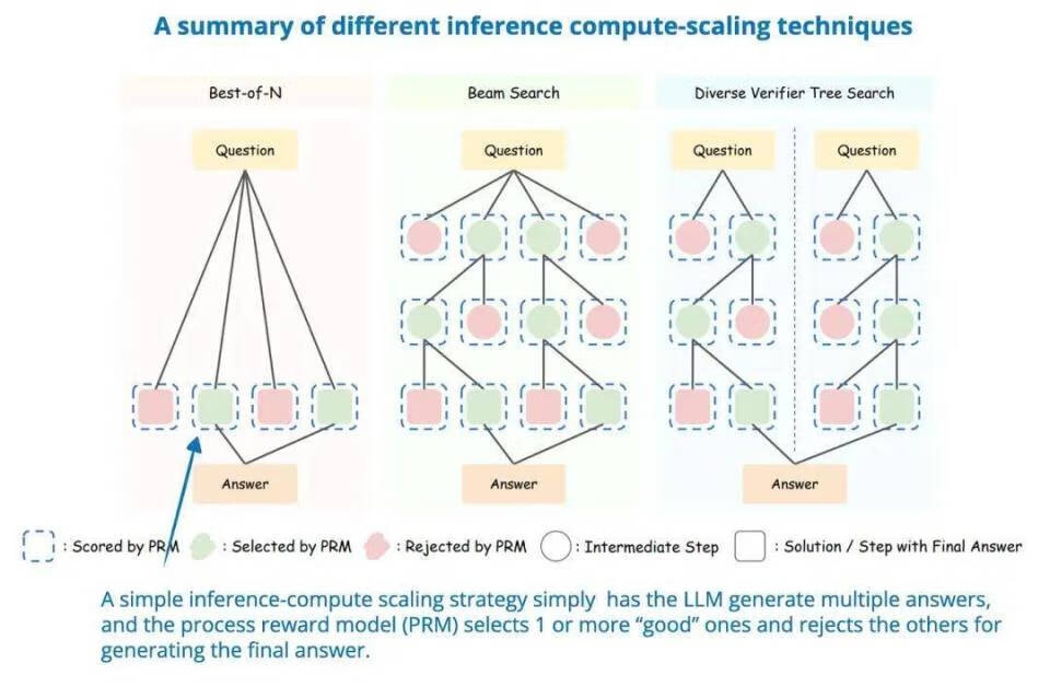 除了上述提到的增加计算资源、提示词工程方法外,还有另一种方法即涉及到投票和搜索策略,例如多数投票或波束搜索,这些策略通过选择最佳输出来优化响应。