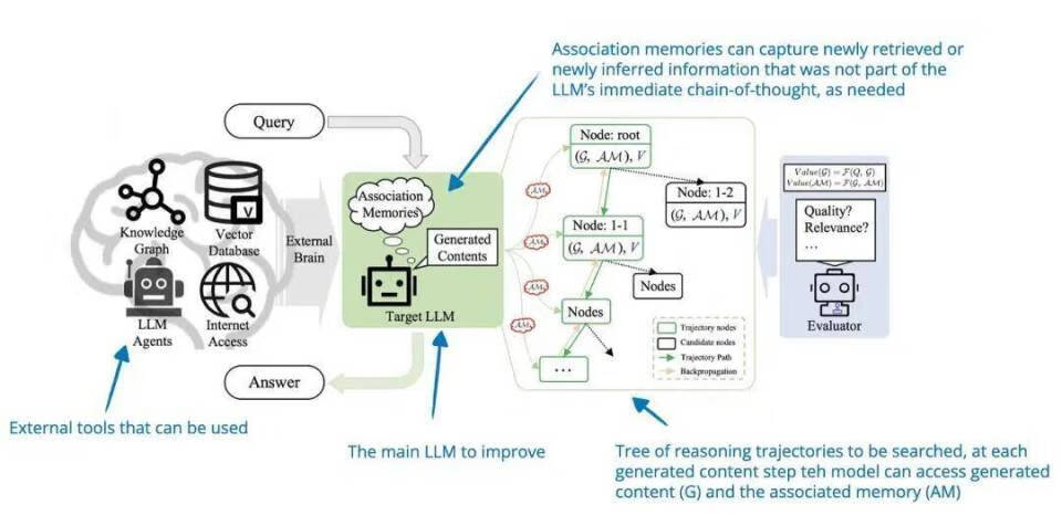 Chain-of-Associated-Thoughts(CoAT)框架是一种用于增强大型语言模型推理能力的新方法,该框架巧妙地将蒙特卡洛树搜索(MCTS)算法与关联记忆机制相结合,通过结构化探索与自适应学习,有效扩展了大型语言模型的搜索空间。