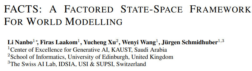 正如之前提到的,李南伯对世界模型有着深深的执着,而 FACTS 是他在这一领域探索中的一项重要工作。李南伯在时空建模方面的思考,深受其导师“递归神经网络之父”、阿卜杜拉国王科技大学尤尔根·施密德胡伯(Jürgen Schmidhuber)教授提出的两个关键原则的影响:历史压缩(history compression)和可预测性最小化(predictability minimisation)。