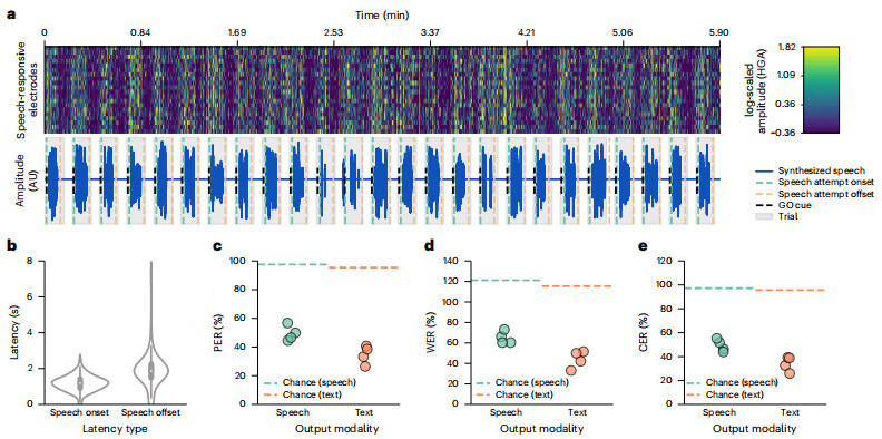 在意图信号出现后的 1 秒之内,系统就能发出首个声音。与此同时,本次技术能够持续解码语音,因此受试者可以持续地输出内容。