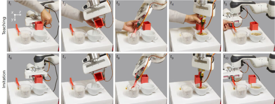 与之对比的是,该课题组所开发的方法更加直观和简单,将传感器直接安装在机械夹爪的手指表面。当夹爪抓取物体,比如在制作咖啡时抓取水杯或勺子时,能够直接通过拖拽物体进行示教(如上视频)。