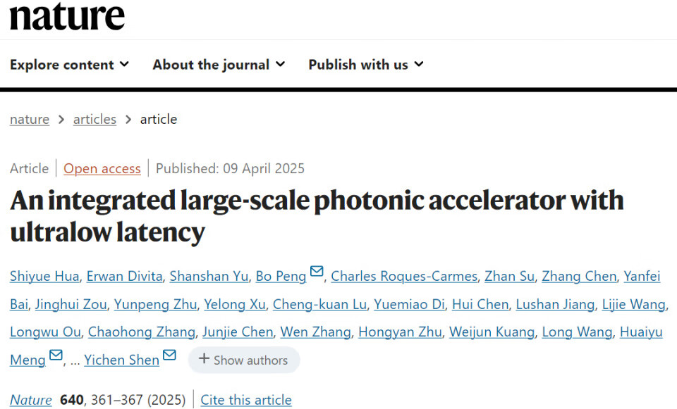 近日,Nature 以《超低延迟大规模集成光子加速器》(An integrated large-scale photonic accelerator with ultralow latency)为题刊载了一篇论文,介绍了曦智科技在光电混合计算领域取得的产业化进展。