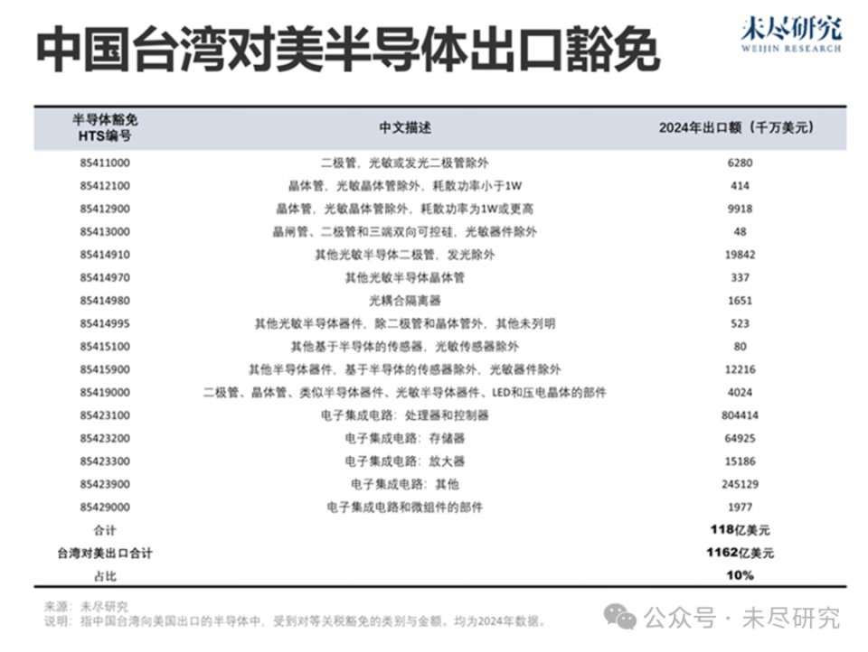 按照这套关税豁免规则,美国的科技巨头们,就无法平价购买AI芯片了。欧亚集团(Eurasia Group)供应链分析师Nancy Wei称,在英伟达官网列出的1300多种商品中,进入豁免清单的只有不到1/5。哈德逊研究所(Hudson Institute)高级研究员Jason Hsu表示,去年,中国台湾对美国出口约1162亿美元,进入豁免清单的半导体合计共118亿美元,仅占10%;进入美国的绝大多数半导体,已经被组装成不能豁免的GPU和服务器,目前,台湾代工了全球约九成AI服务器,将被征以32%对等关税。