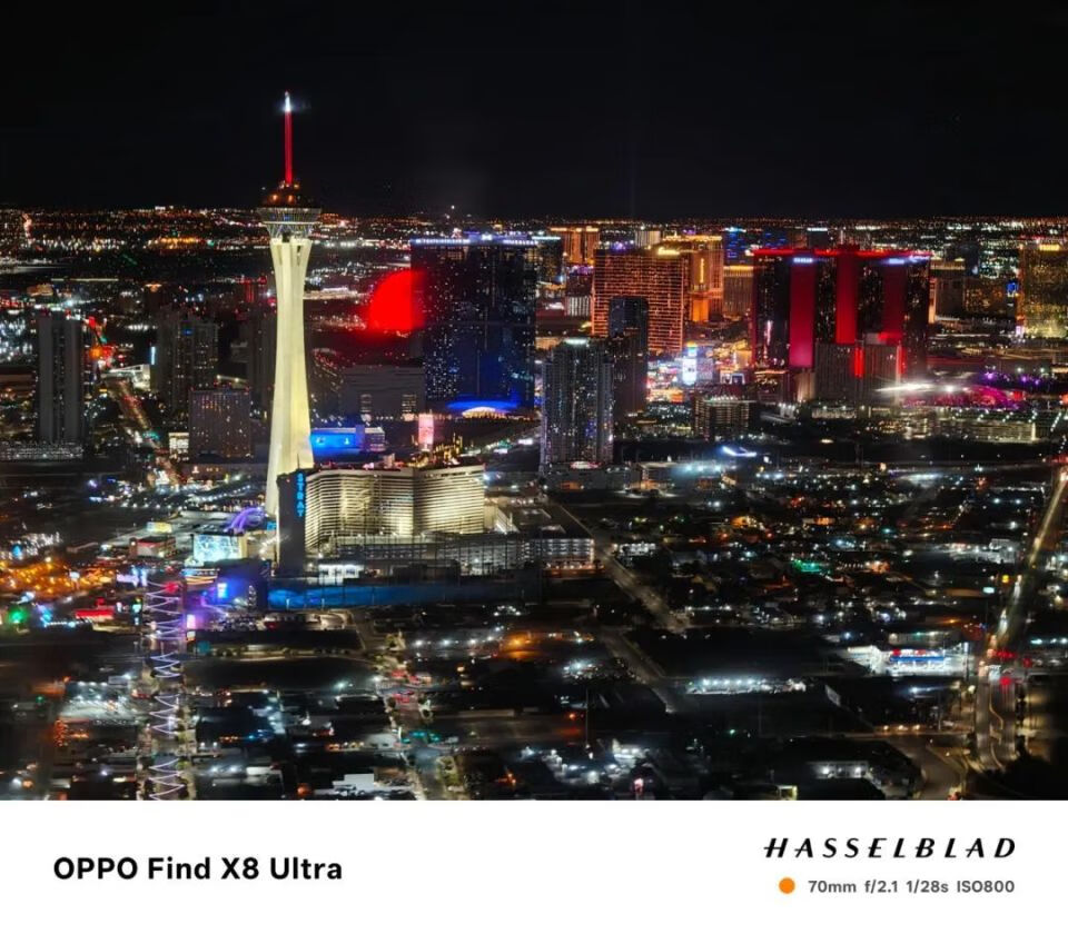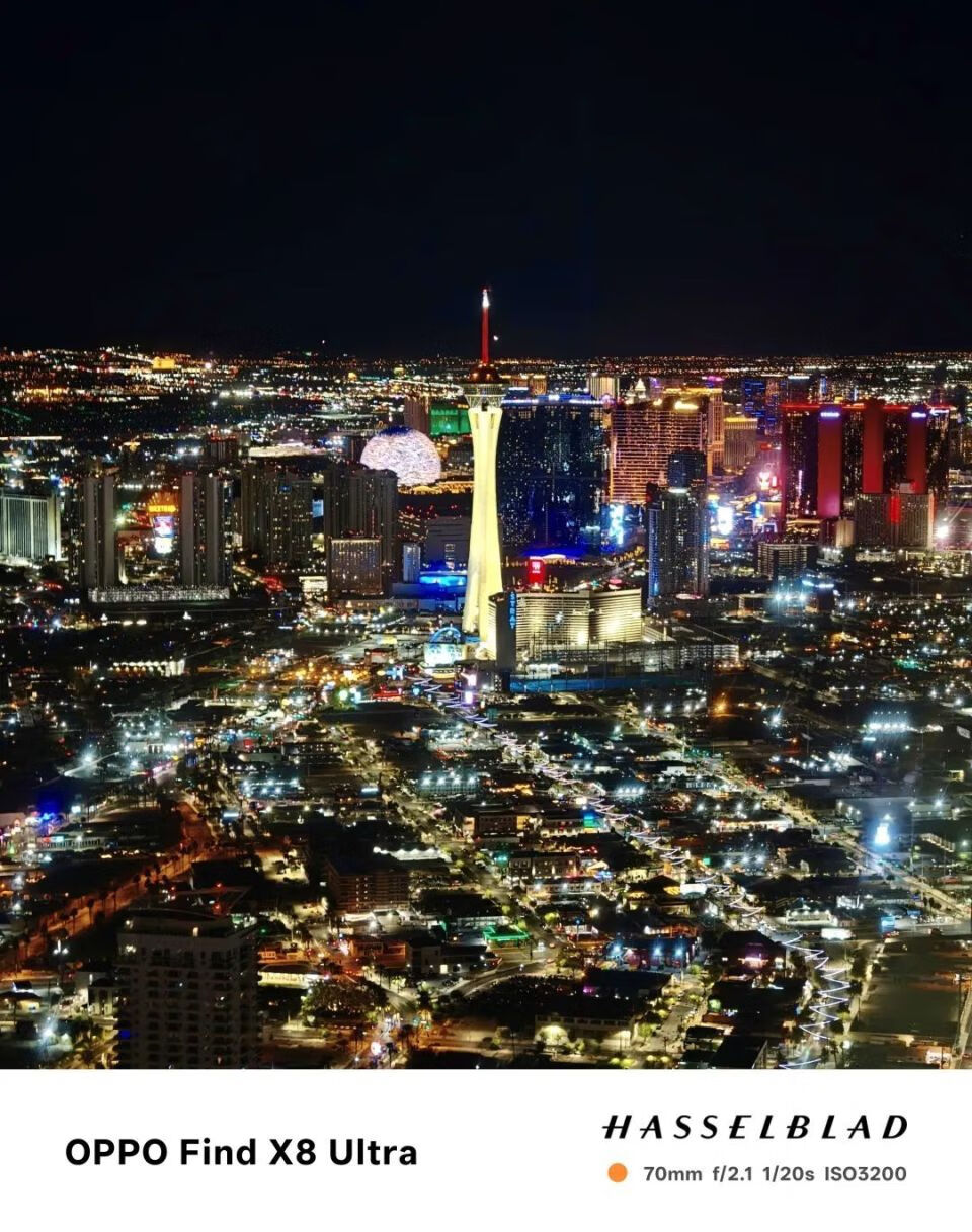 使用 OPPO Find X8 Ultra 空中拍摄维加斯夜景| 图片来源:极客公园