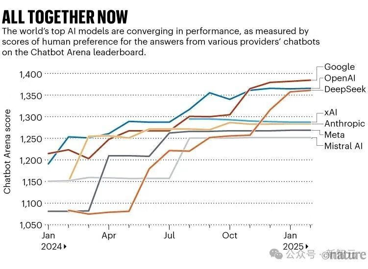 在图像理解与推理方面,它可以正确地总结出斯坦福HAI「2025 AI Index」报告中图表的内容,包括这一年顶尖大模型的性能趋于相近,以及竞争激烈的现象。