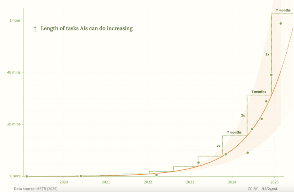 AI Agent 能够执行的任务长度每 7 个月翻倍