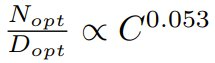 该团队假设计算量、N 和 D 之间存在线性关系(即 C ∝ N D),推导出了模型参数与计算预算之间的相关规律,详见原论文附录 C。简单来说,对于给定的计算预算 C,以对数间隔的 D 值计算相应的模型大小 N,并确定使损失最小化的参数数量 N_opt。对不同的 FLOPs 值重复此操作,可得到一个 (C, N_opt) 数据集,该团队对其拟合了一个幂律,可预测计算最优模型大小与计算量的关系:N ∗ ∝ C^0.526。
