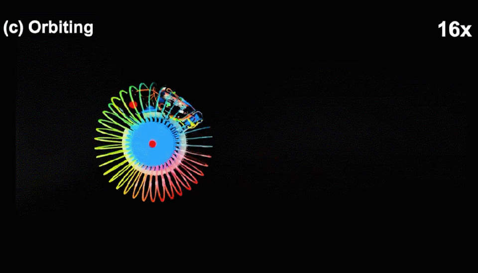 该课题组成员、清华大学机械系一年级博士生冯思源解释说道:“当我们将 WHERE-Bot 放置在地面上时,翻转的弹簧圈与地面之间存在摩擦力的交互,机器人会在地面上产生具有一定规律的运动轨迹。”