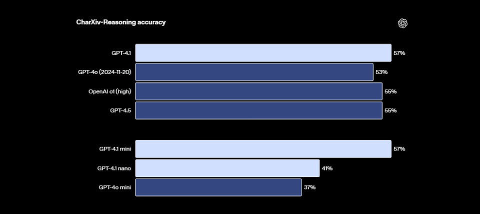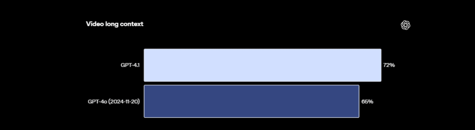 与 GPT‑4o 相比,GPT‑4.1 在普通查询上便宜了 26%,而 GPT‑4.1 nano 是OpenAI 迄今为止最便宜且最快的模型。