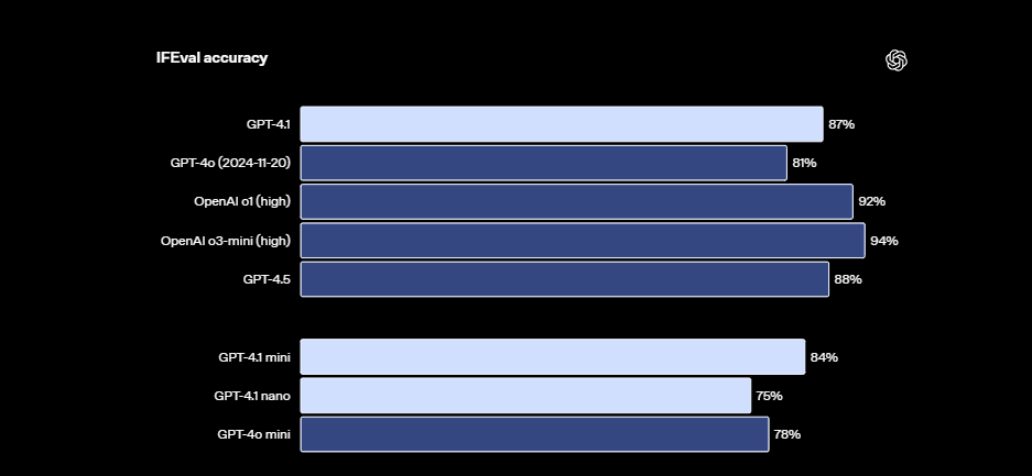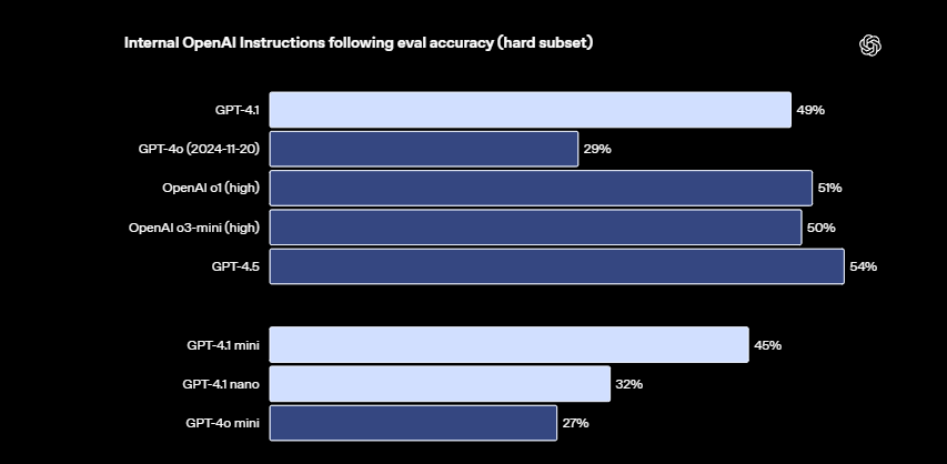 这些模型在各项指标上全面优于GPT-4o和GPT-4o mini,特别是在编程、指令遵循以及上下文理解方面表现突出。