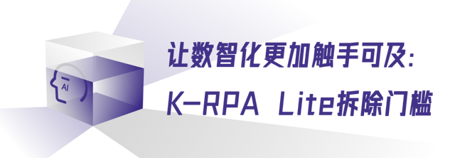有了K-RPA Lite,到底能给企业开发带来什么改变呢?最核心的变化是,开发效率变得更高了,智能化就此提速。