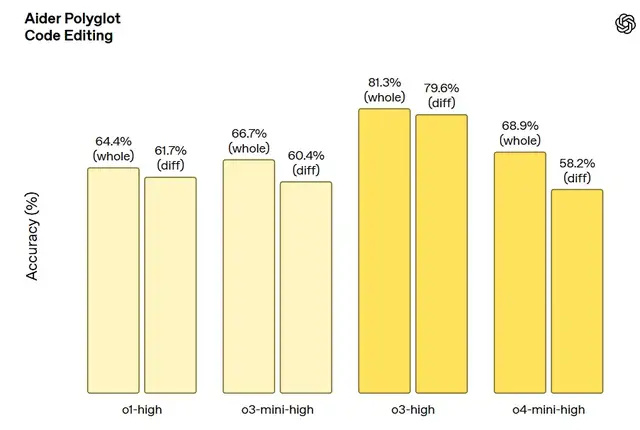 o3 和 o4-mini 是 OpenAI 迄今为止发布的最智能模型,而且它们通常也比其前辈 o1 和 o3-mini 更高效。