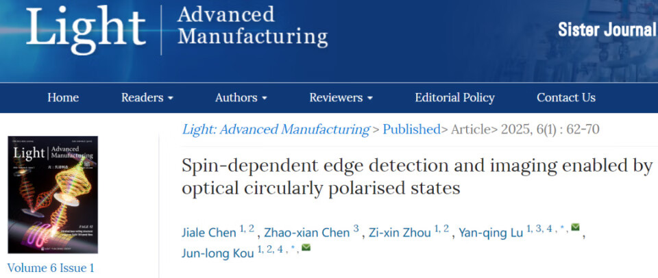 1.Chen, J., Chen, Z. X., Zhou, Z. X., Lu, Y. Q., & Kou, J. L. (2025). Spin-dependent edge detection and imaging enabled by optical circularly polarised states. Light: Advanced Manufacturing, 6(1), 62-70.