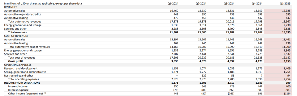 4月23日消息,特斯拉在美股周二盘后发布了该公司2025年第一季度财报。