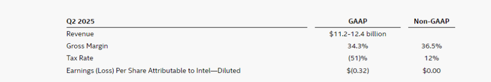 英特尔提供了对2025年第二季度的业绩指引: