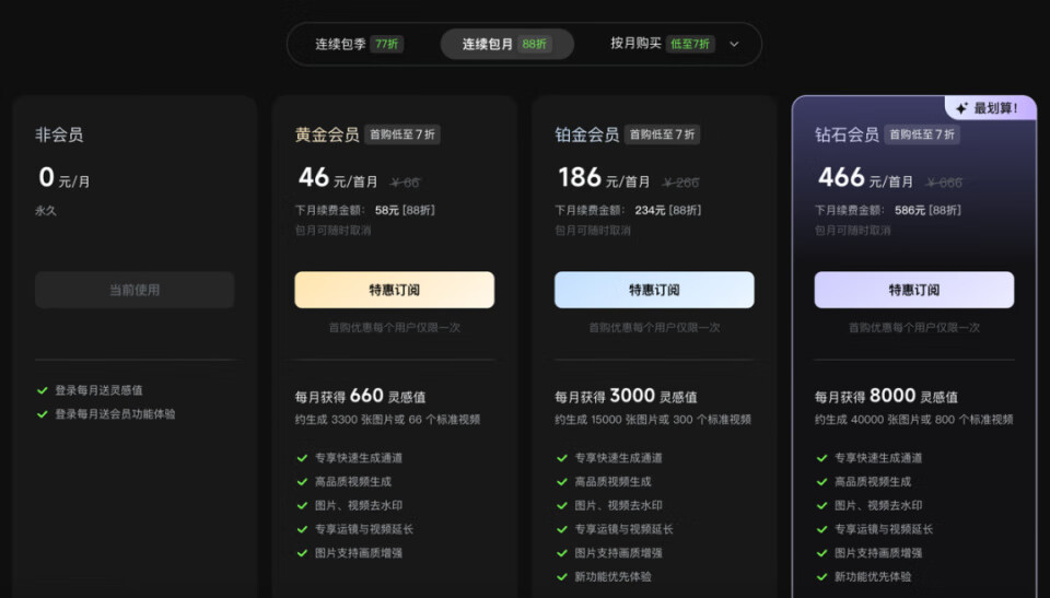商业模式的探索也呈现出多元化。在早期,许多厂商都是通过提供基础的免费使用版本来吸引大量用户尝试,再通过付费解锁高级功能(如更高分辨率、去水印、商用授权等)来实现盈利。但在生成的视频质量还有限的情况下,大多数用户可能也只是用免费版本来“图一乐”,而不会选择进一步付费。