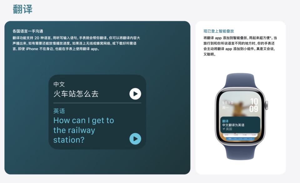watchOS 11 上新增了翻译的功能,但还无法调用大模型能力|Apple