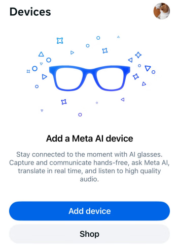 Meta AI的“生态化反”还有一个体现,是用户可以在应用里绑定AI硬件,可选择的有Meta的两款雷朋AR眼镜。