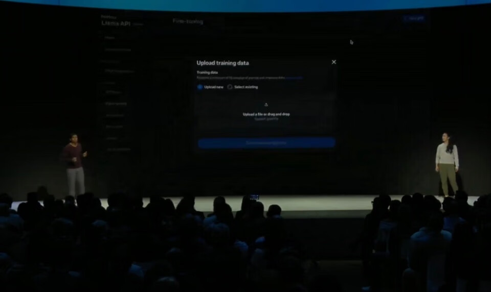 开发者可在微调标签页上传用于微调的数据,或是使用Meta提供的合成数据工具包生成后训练数据。
