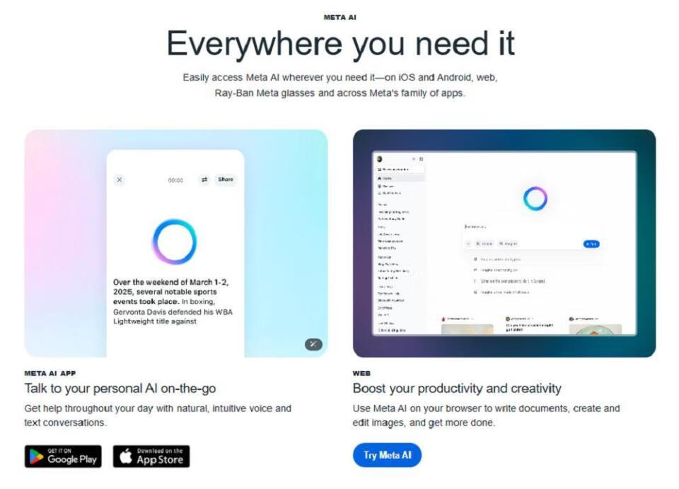 为提供更丰富的AI体验,Llama推出了独立智能助手App——Meta AI。
