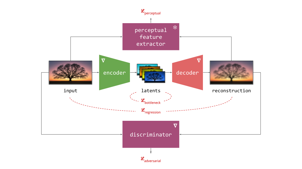 消除对抗训练的必要性无疑会简化事情,因此扩散自编码器在这方面是一个有趣(最近也相当流行)的研究领域。然而,在延迟方面,与对抗性解码器竞争似乎颇具挑战性,所以我认为我们还没有准备好放弃它们。我非常期待一个更新的方案:它不需要对抗性训练,但在视觉质量和延迟方面却能与当前的对抗解码器相媲美!