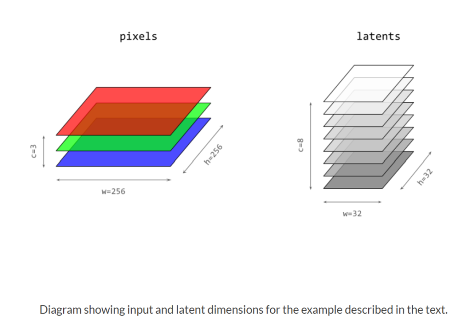 总体而言,潜在表征的张量组件数量(即浮点数)比表征原始图像的张量少。我喜欢将这个数字称为张量尺寸缩减因子(TSR),以避免与空间或时间降采样因子混淆。