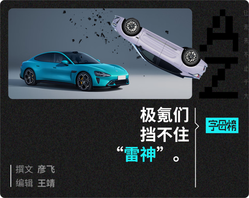 这并不难理解:就产品而言,极氪001/007与小米SU7各有千秋,大体处于同一档次,谈不上谁压倒谁;而在营销上,“雷神”坐镇的小米远胜于包括极氪在内的所有新势力。极氪没能在产品上建立绝对优势,营销又打不过,蛋糕自然就被小米分走了一部分。